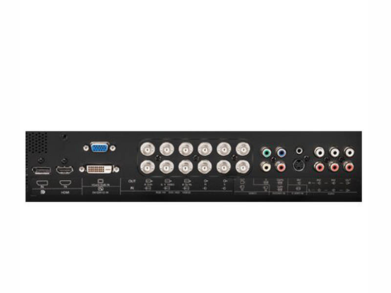 Szczegółowy opis złączy monitora: 1x HDMI; 1x DisplayPort; 1x DVI-D; 1x VGA; 1x S-Video; 12x BNC (6xIn/6xOut); 3x RCA (Component); 1x Cinch; 6x Audio (In/Out); 1x RJ-45 (LAN); 2x RS-232C (In/Out); 2x złącze głośnika zewnętrznego